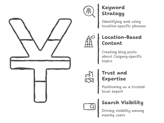 Strategic keyword use is at the core of successful local SEO in Calgary. Start by identifying and using location-specific phrases that reflect your services — for example:
