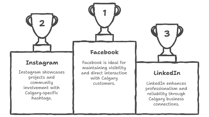 Platforms like Facebook, Instagram, and LinkedIn are perfect for maintaining visibility and encouraging direct interaction. Use Calgary hashtags (e.g., #YYCbusiness, #CalgaryServices) to improve discoverability.